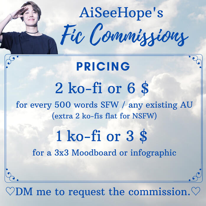 In this house, you will find both SFW and NSFW fics. My favourite genre is slice of life and my favourite AUS include omegaverse, college, and soulmates. I like experimenting with genres, so you'll see me dabbling in a bit of everything here and there. I don't do halfies. If I tag angst, it's not a drill lol. Same goes for fluff though, so we're evened out.The blood in my veins is made of Hobi harem. I love all Hobi ships and Hobi centric love triangles/polygons and polyamory ships, in every permutation and combination. I also like non romantic stories centered around Hobi. My favourite sexual dynamic to write is sub bottom Hobi.I also write the occasional hard kink. Rest assured, all my fics are tagged properly for your safety. I do not condone any of the malpractices portrayed in some of my fics. They are purely fiction, and should be taken as such.